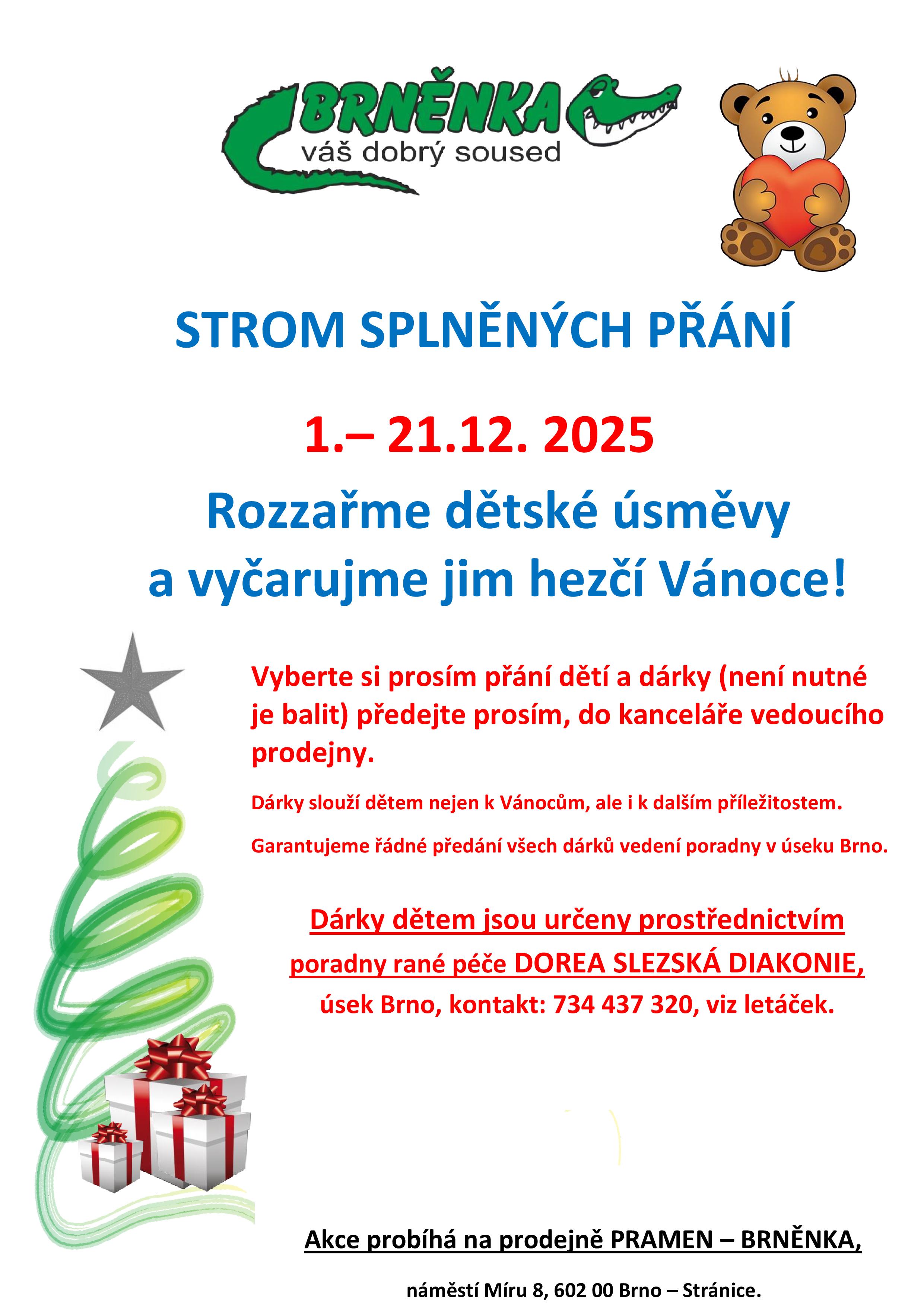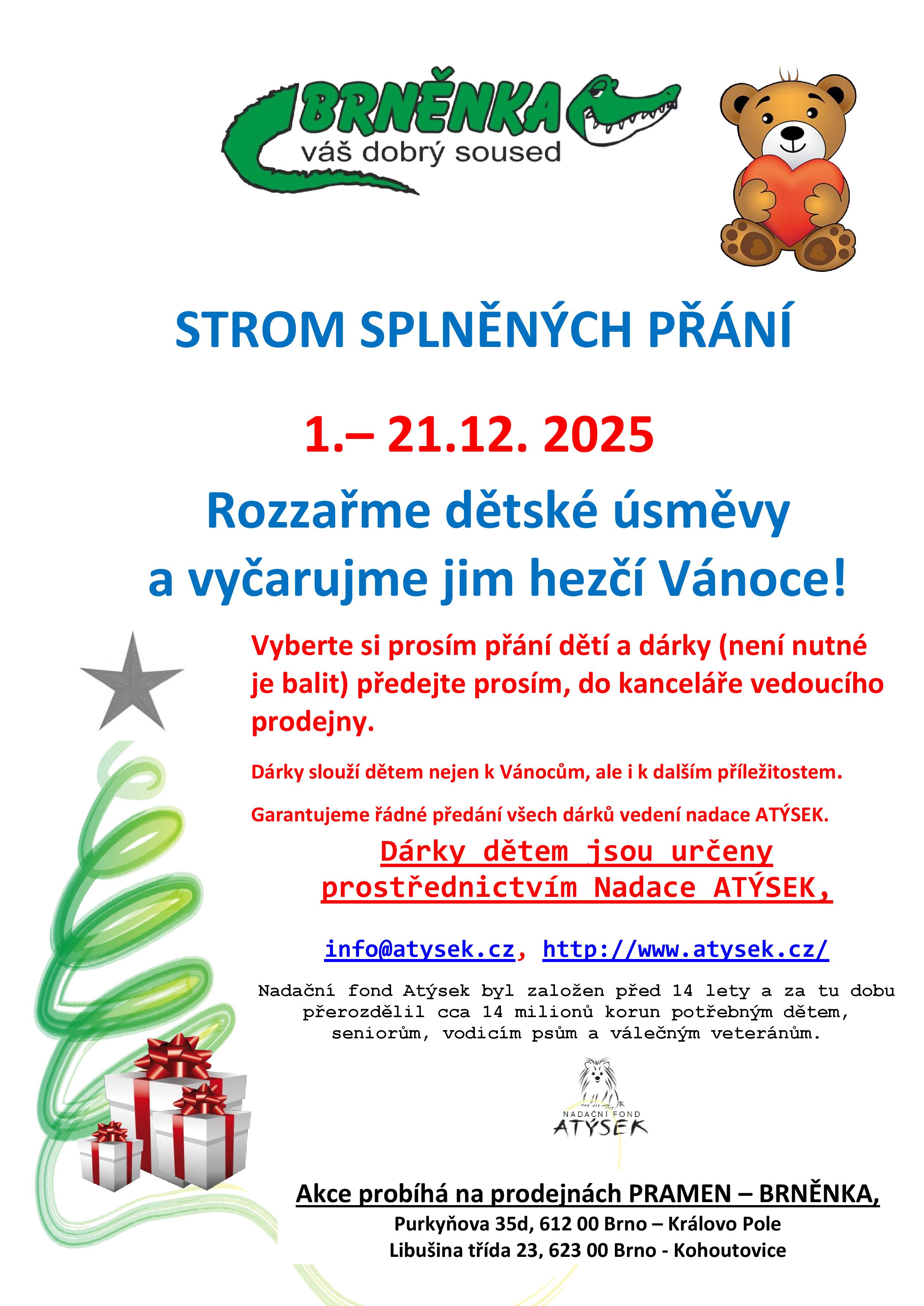 Strom splněných přání na prodejnách Purkyňova 35d, Kr. Pole a Libušina tř. Kohoutovice