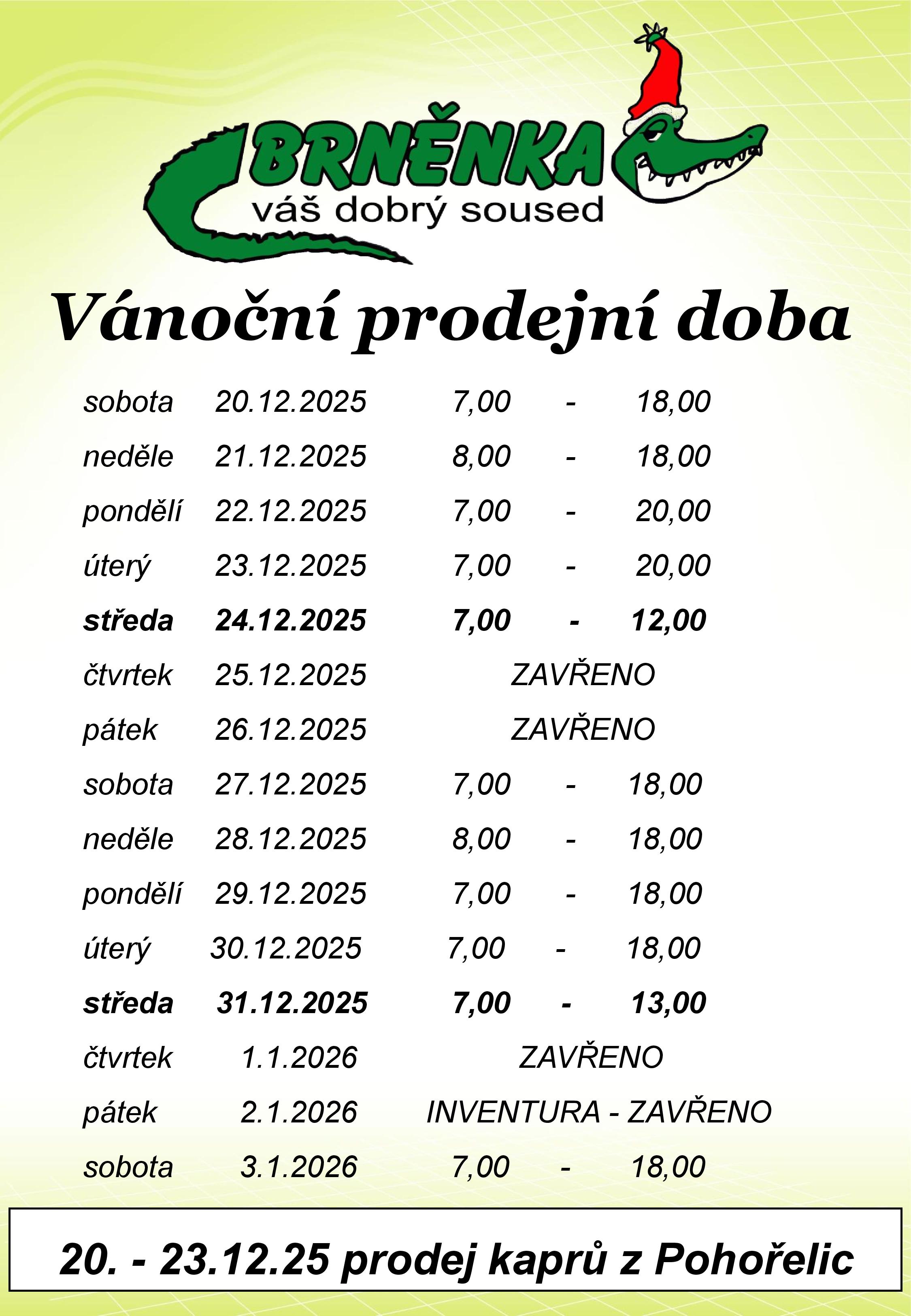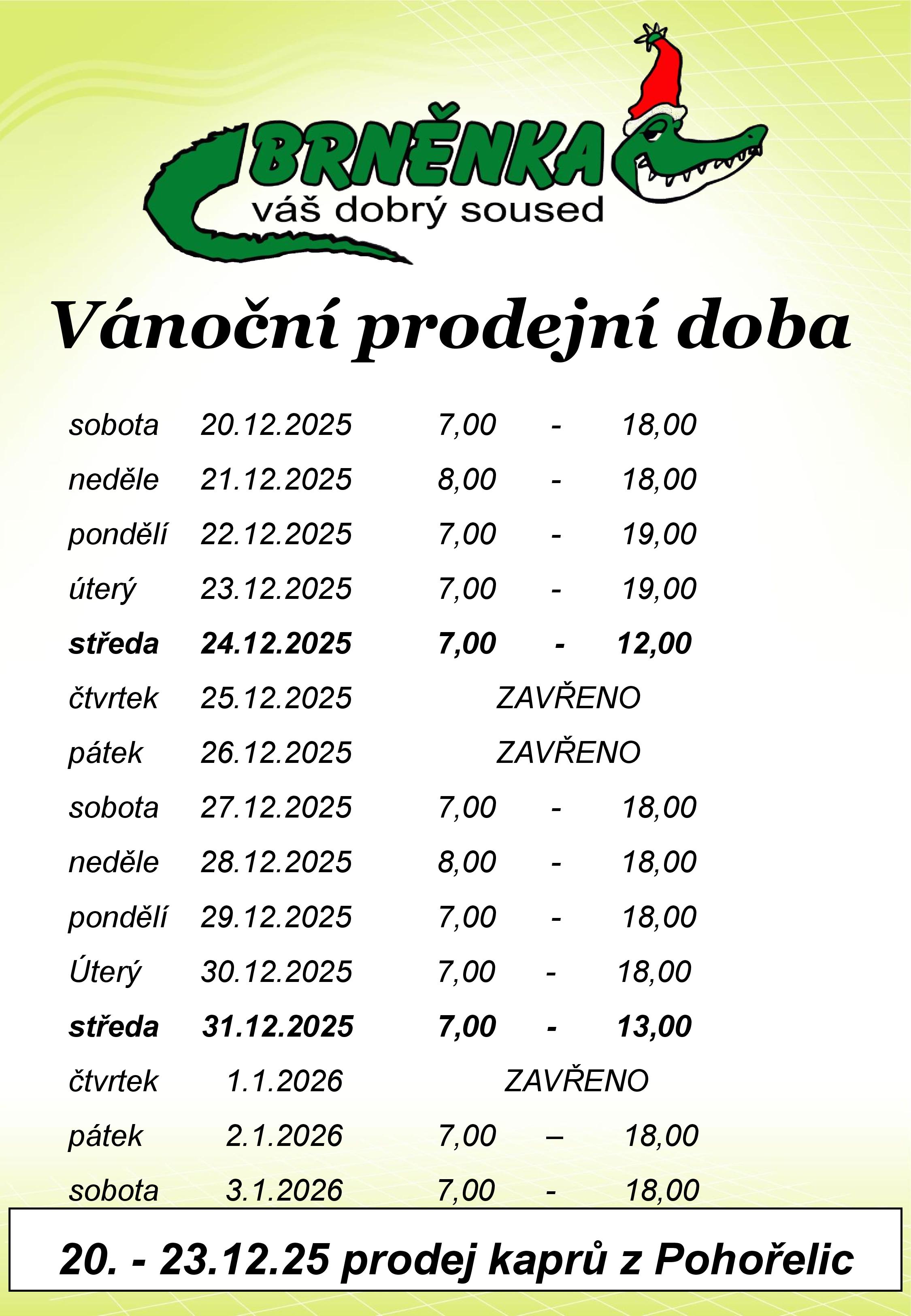 Otevírací doba o svátcích prodejna Purkyňova 35d, Brno