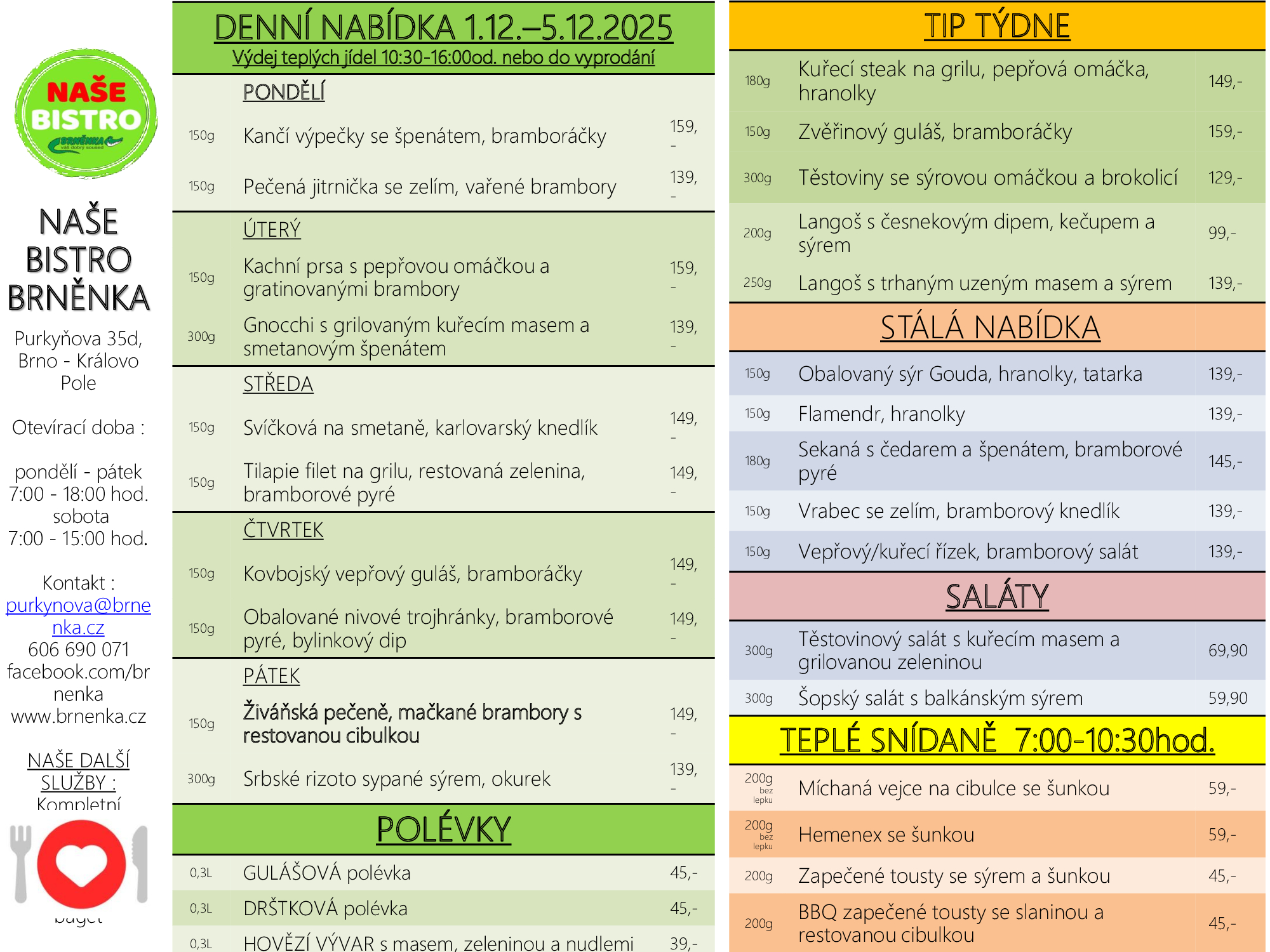 Nabídka jídel, vzhledem k jejich čerstvosti, platí jen do vyprodání zásob.