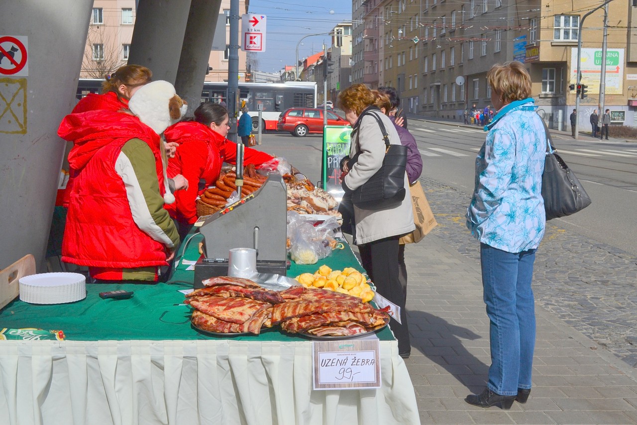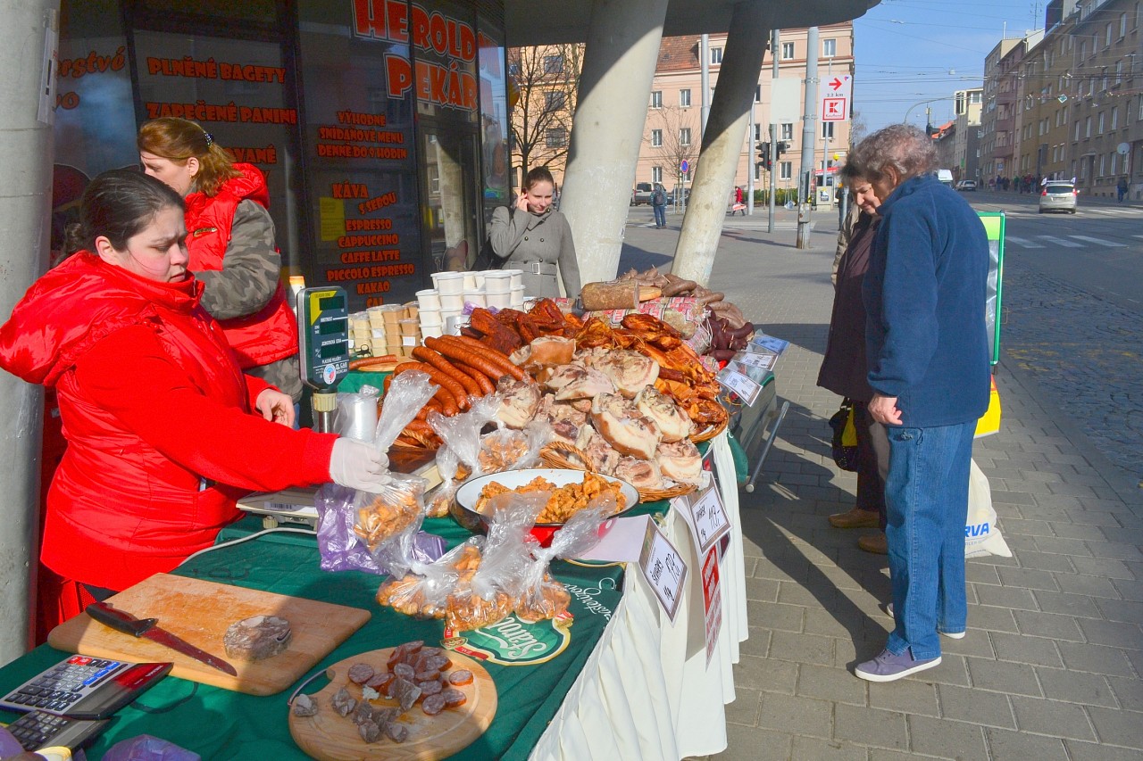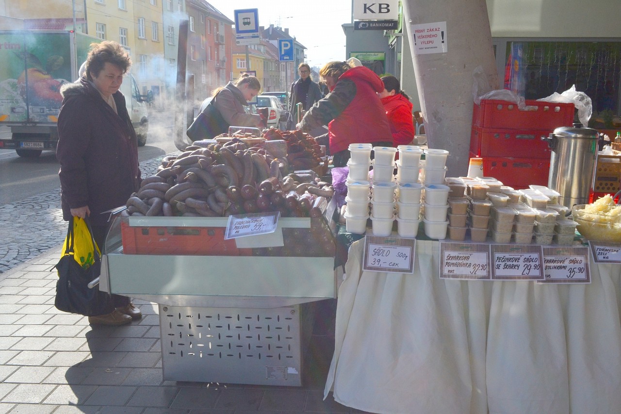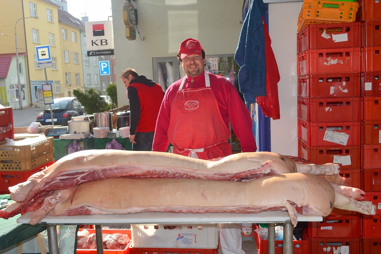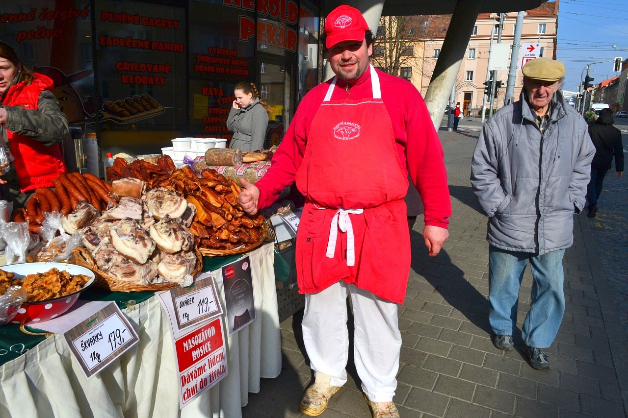Zabíjačkové hody před prodejnou Purkyňova 35d v Brně.
