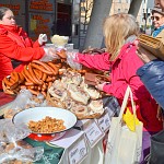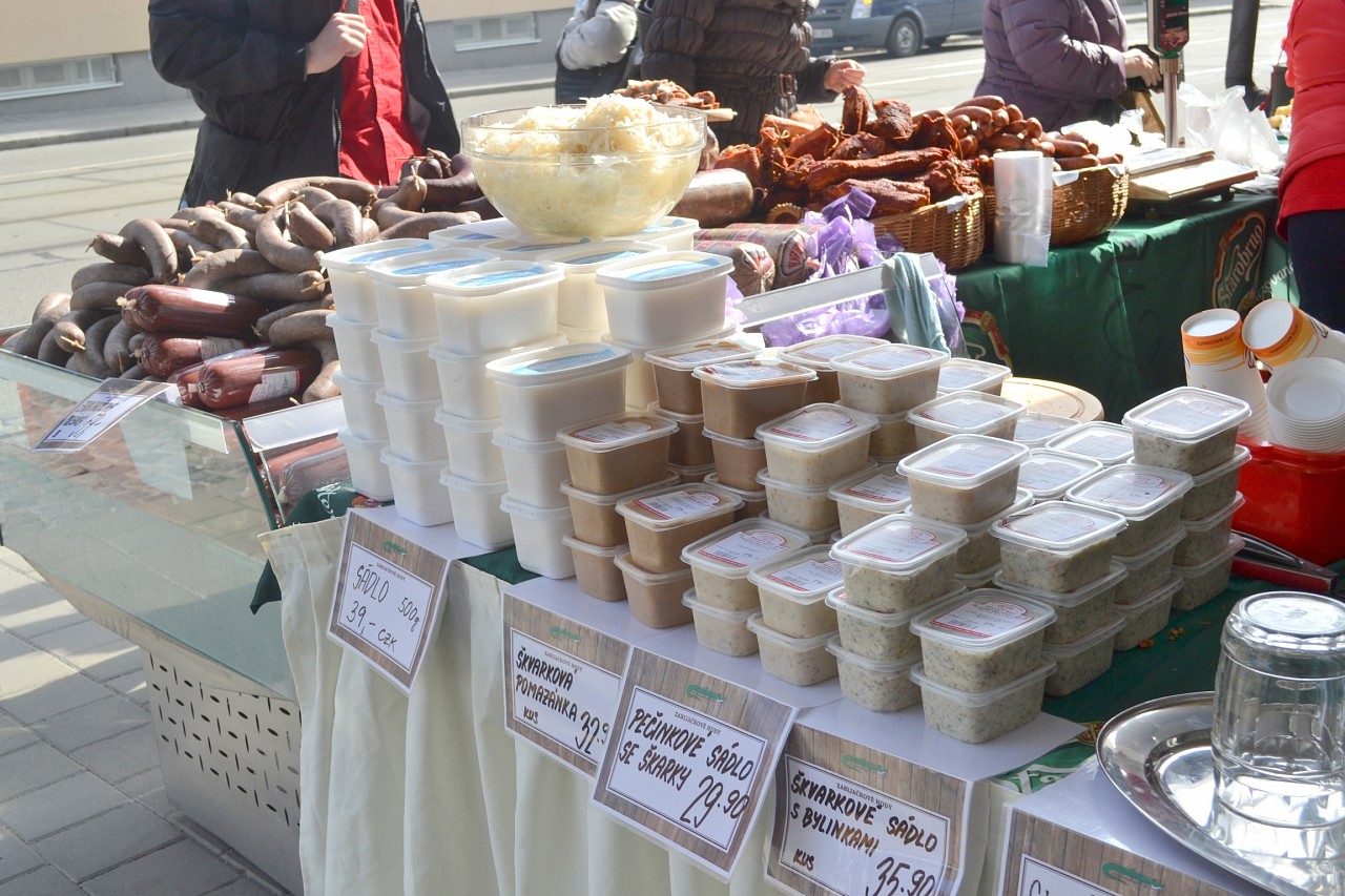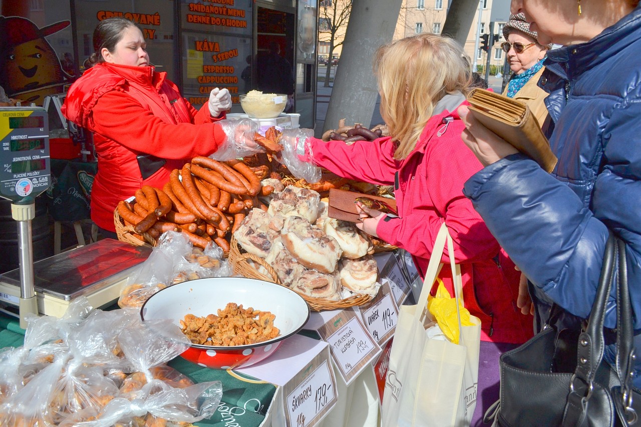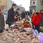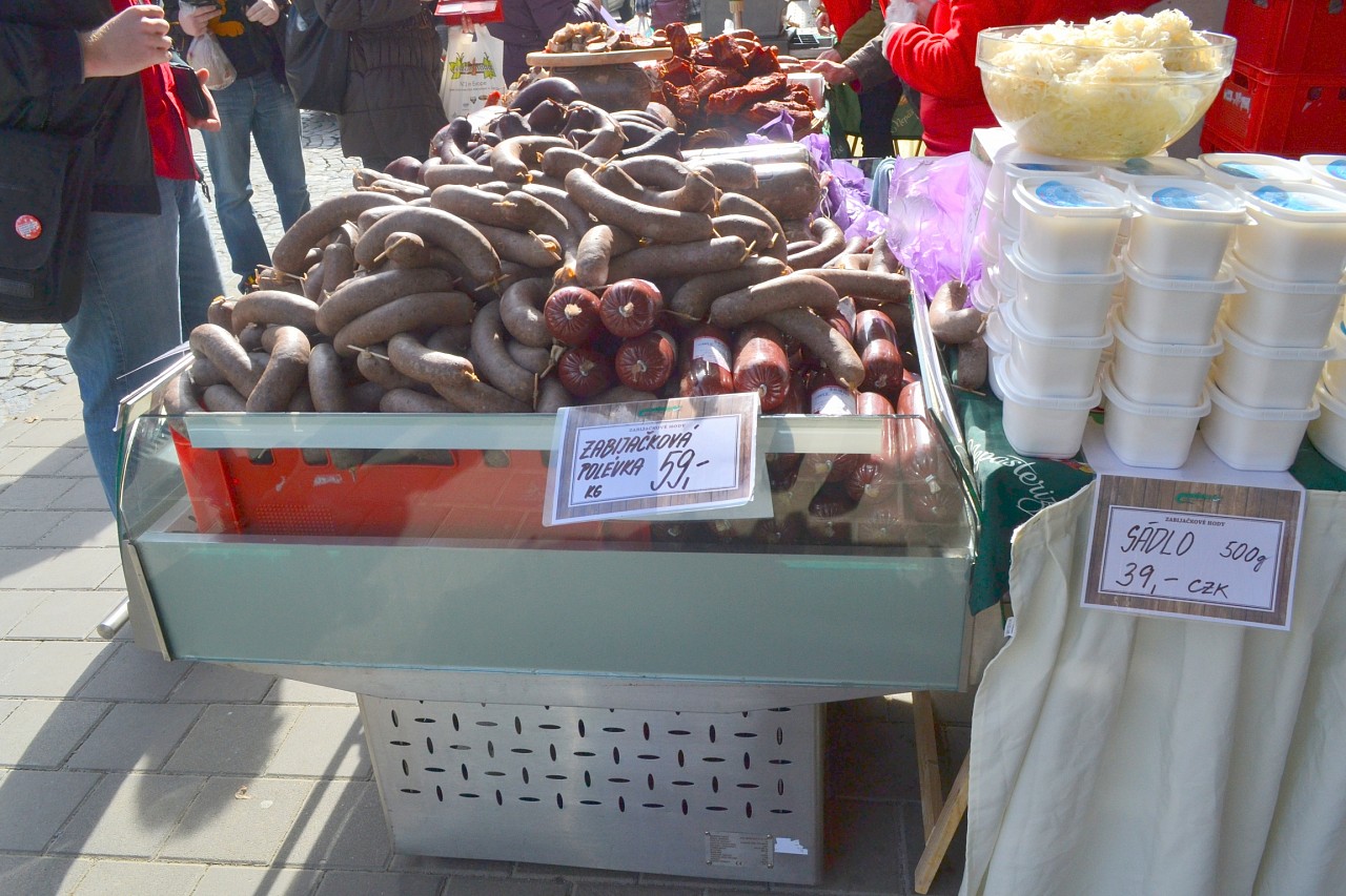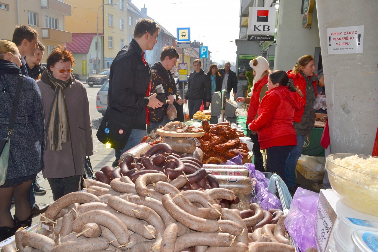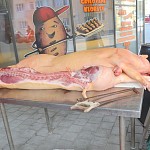 Zabíjačkové hody před prodejnou Purkyňova 35d v Brně.