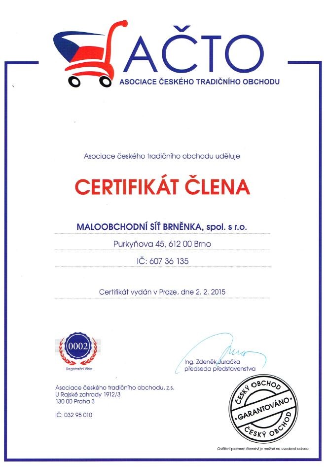 Maloobchodní síť BRNĚNKA, spol. s r.o. se stala členem Asociace českého tradičního obchodu.